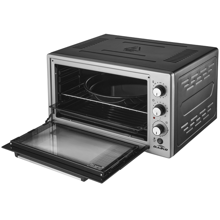 Réalisez toutes vos envies culinaires avec le four électrique Daiko FE5533DK. D'une capacité généreuse de 50 Litres, il vous permet de cuire de grands plats familiaux avec une facilité déconcertante. Sa puissance de 1500W, couplée à un système de ventilation (chaleur tournante), assure une cuisson rapide et parfaitement homogène de vos aliments. Conçu pour durer, il dispose d'une cavité entièrement émaillée, résistante aux rayures et très facile à nettoyer. Polyvalent, il est équipé d'une minuterie de 90 minutes, d'un éclairage intérieur et est livré avec un set complet d'accessoires : grille, plateau carré et un plateau rond idéal pour vos pizzas ou pâtisseries.